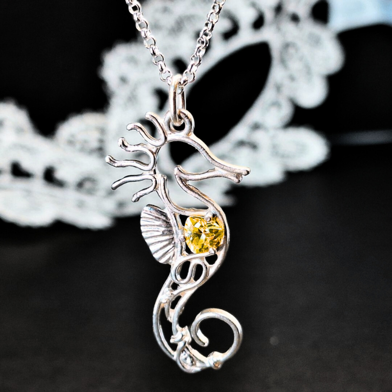 The seahorse is a symbol of grace, uniqueness, and quiet strength. They choose one partner for life and greet each other each morning with a tender love dance — until their very last day. Carry this enchanting creature with your favorite stone as a reminder of lasting love and gentle resilience.